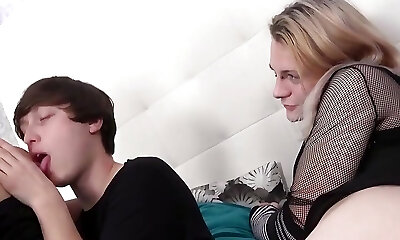 Young schoolgirl and step-dad discover her nephew masturbating with her thong and gets anal pounding