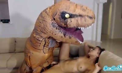 Seductive babe in erotic clothing is getting fucked in front of her web camera, just for joy