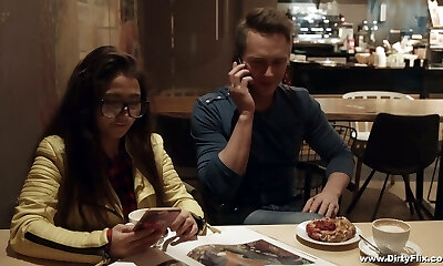 Nerdy brunette in glasses Little Candy is fucked hard by horny man