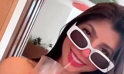 Solo brunette damsel drinking and having fun in a homemade movie