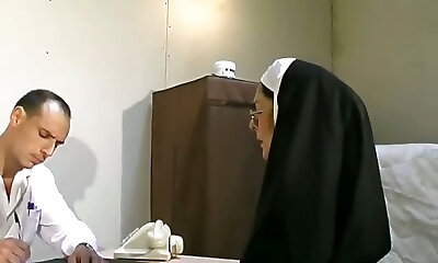 Little nurse's black pantyhose foot romp, ejaculating in her pantyhose
