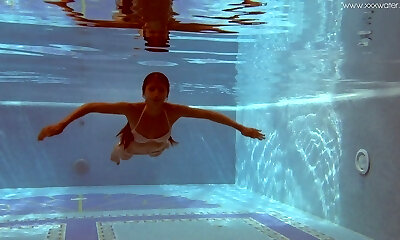 Sexy all alone svelte mermaid Irina Russaka displays her puny tits underwater