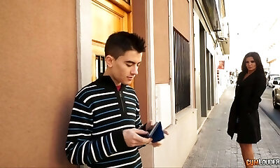 Garrulous brunette woman brings home this boy and deepthroats his dick