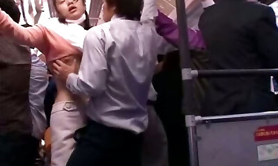 Tired chestnut haired office clerk Mami Asakura is plowed in subway teach