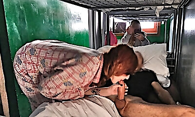 HOSTEL Oral Pleasure: the big boobs mega-slut wakes me up with a good blowjob and sucks all my jizm
