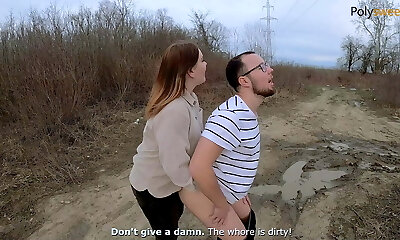 Pegging on the Public bitch!! My tart cums!! Free Hands!!