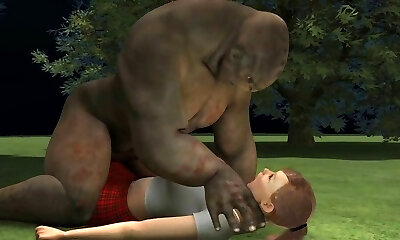 Man Meat goblin fucks rigid fitness girl in the forest at night