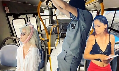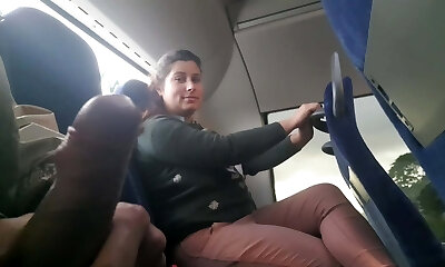 Exhibitionist tempts MILF to Suck & Jerk his Dick in Bus until He Cums