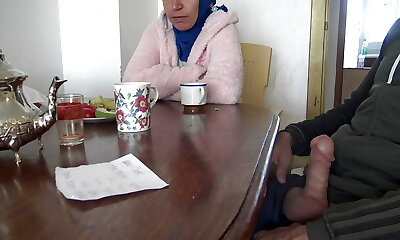 Startled BUT Curious! Muslim pregnant neighbour in niqab caught me jerking off and asked me to let her touch my uncut beefstick