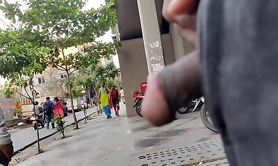 Man flashes in public and jerks off dick near unknown nymph. OMG!
