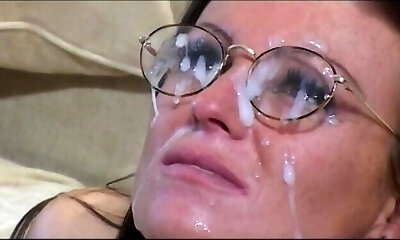 MILF with glasses love to bang wildly and then get a facial