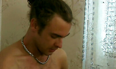 Horny brunette blows friend's manstick before hard fuck in the bathroom