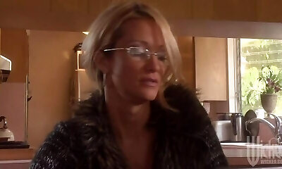Frisky Blonde Babe With Black Glasses And Big Knockers Is
