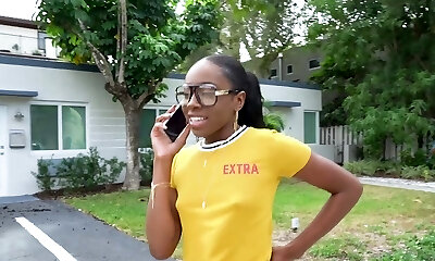 Dark-hued slut Amari Anne has to suck a stiffy before getting fucked