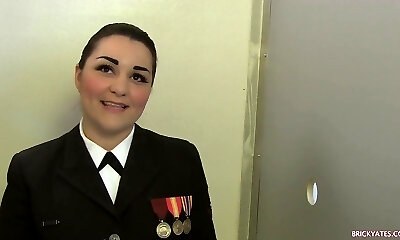 NAVY GIRL MORENA GETS DOUBLE Facial AT GLORYHOLE