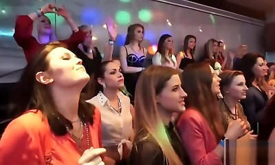 Some of the tarts at this CFNM fuckfest intercourse are getting more horny and start taking off their clothes